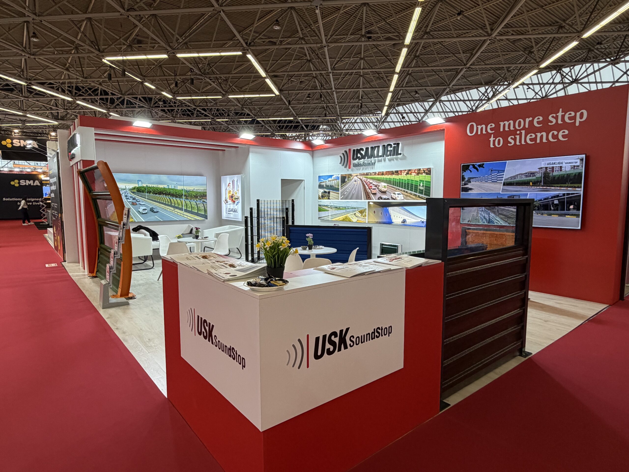 Fuar boyunca USK Gürültü Bariyeri Sistemlerimiz, üç temel güçlü yönüyle yoğun ilgi gördü: çift EPDM conta teknolojisiyle sıfır sızıntılı akustik performans, EN 1793 ve EN 1794 standartlarına tam uyum ve hafif, deniz suyuna dayanıklı, %100 geri dönüştürülebilir alüminyum kaset yapısıyla sürdürülebilir dayanıklılık. Bu özellikler, sistemlerimizi zorlu kamu ve özel sektör altyapı projeleri için güvenilir bir çözüm haline getirmektedir.